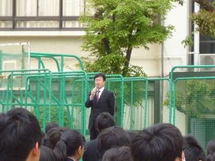 次に、今日の全校集会の集合・整列状態は非常に良かったです。8時15分にはほぼ全員の人が整列できていました。しかし、何人かの人は少し遅れて列に加わっていましたが、急いで走ってきた人もいれば、急がず歩いて加わった人もいました。8時20分の全校集会の開始に8時20分に登校しては間に合いません。集団での行動をきちんととれるよう心掛けてください。