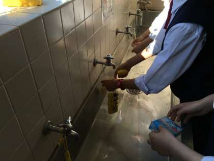 保健委員会では、石鹸の補充やウォータークーラーの清掃も行いました。