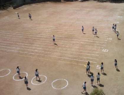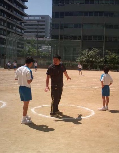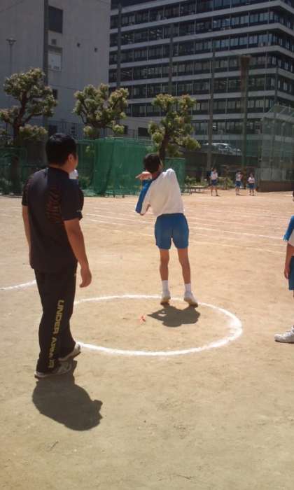 今日は、2年生が保健体育でハンドボール投げに挑戦しています。