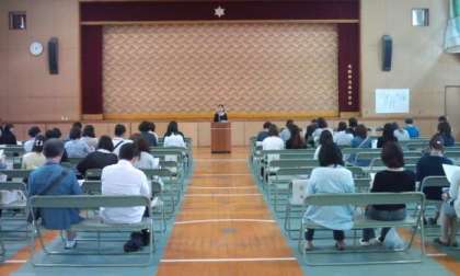 授業参観の後、体育館で予算総会が開催され、事業案や予算案が承認されました。