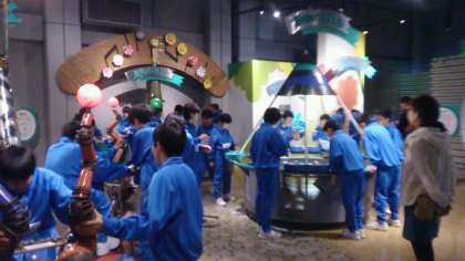 続いて、各クラスに分かれて、テーマごとのコーナーで体験したり、説明を詳しく聞いています。
