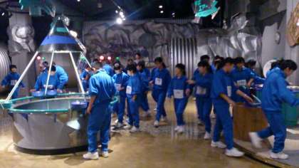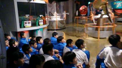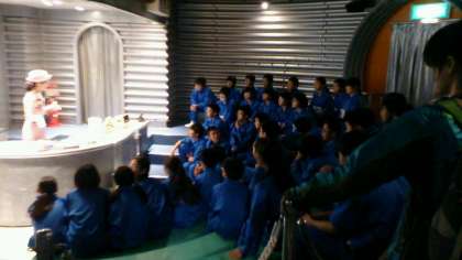 続いて、各クラスに分かれて、テーマごとのコーナーで体験したり、説明を詳しく聞いています。