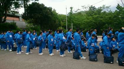 12時15分、府立少年自然の家に到着しました!予定より少し早く着いたので、他の学校が退所する時間調整し、これから昼食場所に移動します。