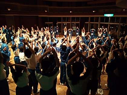 レク係の司会で始まりました。円盤体操の様子です。