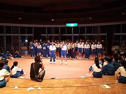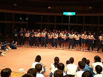 クラスレクが始まりました。まずは3組と2組かそれぞれ作詞したクラスの歌を歌いました。