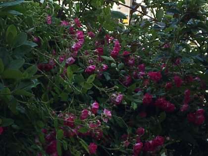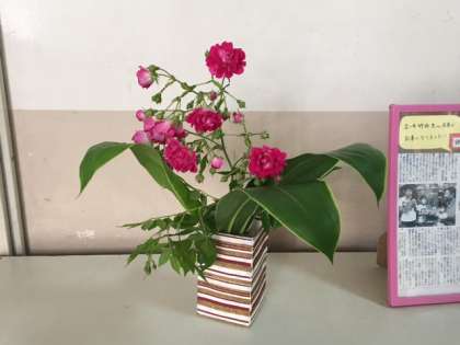 東中の北西の角にはガーデニング部が主に活動している畑があります。その側にバラの花が咲きました。職員室の入り口にも生けています。