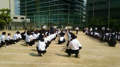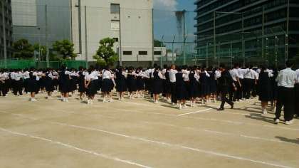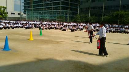 避難警報が鳴ってから、3分59秒で本校生徒、職員全員がグラウンドに集合することができました。一人一人の危機管理も大事なことですが、全員が助かることも大切にし、怪我なく終えたことがよかったです。