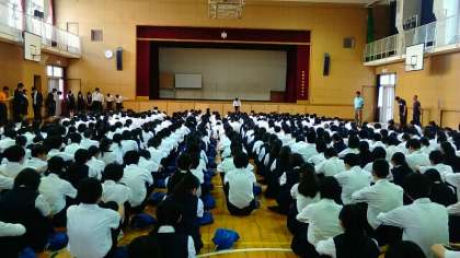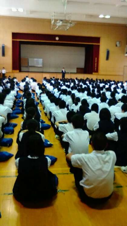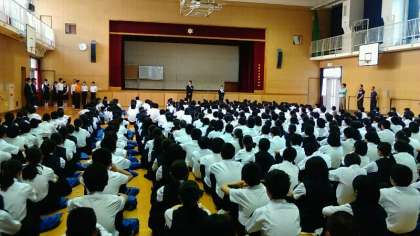 次に、校長先生から品性についてのお話がありました。先週の16,17日と1年生の一泊移住がありました。初めて校外に出て、多くの方々からのご支援をいただき、たくさんのことを学ぶ機会となりました。その時に初めて出会う方々は、東中学校はどんな学校かを、1年生の言動によって見られ、判断され、印象を持たれます。その時に「品性」が関わってきます。「品性」とは道徳的基準から見た、その人(東中生)の性質がどうかということです。