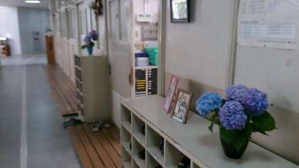 本町通り沿いの敷地にあじさいの花が色鮮やかなに咲いています。職員室前廊下に生けてもらいました。もう梅雨の時期を感じさせる蒸し暑い天気ですが、美しく咲く花ばなを観ると癒されます。東中生も気づいてくれるでしょうか!?