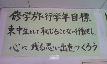 3年生の4階フロアには、修学旅行に向けて、学年目標が掲示してあります。