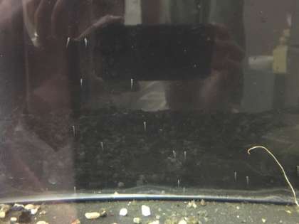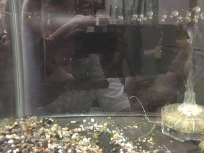 以前から管理作業員室で大切に育てられていた鯉の卵が孵化しました。小さな幼魚が水槽の壁についています。