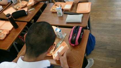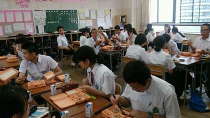 3年生は、給食も班体制をとり、班活動の一環として、みんなで揃って楽しく食べています。