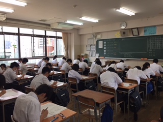 本日(6月9日)、3年生は第1回実力テストに臨んでいます!!自分自身の進路選択のために、3年生全員が必死に問題に向き合っています!頑張れ3年生!