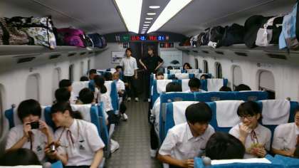 新幹線がホームで2分間しか停車しない状況でしたが、スムーズに乗車し、座席では早速楽しいひとときです。