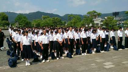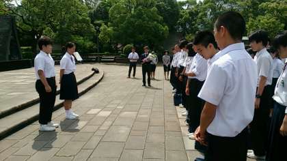 修学旅行実行委員から平和宣言があり、黙祷の後、献花が行われています。