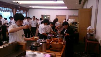 早い起床にも関わらず、服装を整え、荷物を詰め、そしていつもの行列です!