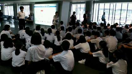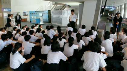 実行委員と野間口先生からの諸注意です。皆さん、世界遺産の軍艦島にまもなく向かいます。マナーやルールをきちんと守りながら、楽しくしっかりと学習しましょう!