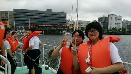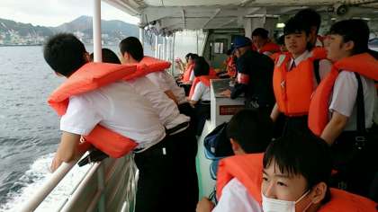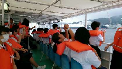 軍艦島に向かっています!みんな爽やかな風を受けて気持ちよさそうです!