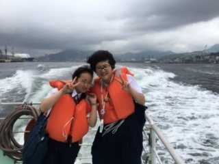 すごいスピードで船は進んでいます。風が気持ちいいです!