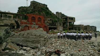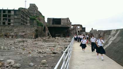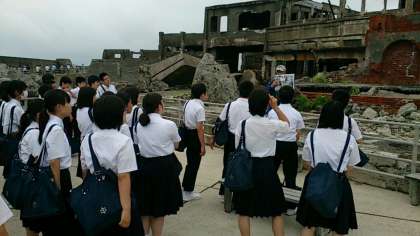2度とできないような貴重な体験学習。今まさに、東中生は軍艦島にいます!