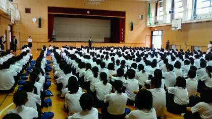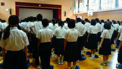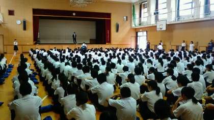 本日6月20日、本校体育館にて全校集会を行いました。連日暑さが続いておりますが、遅刻者もほとんどおらず、今日は集合も早く素晴らしい状況で全校集会を行えました。
