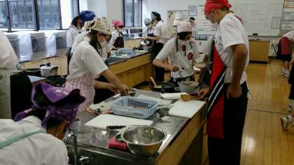 メニューはクリームシチューとフルーツポンチです。班の仲間と協力しながら、楽しそうに調理しています。食べるのが待ち遠しいですね!