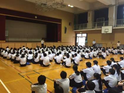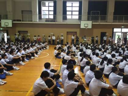 3時間目終了後、体育館にて緊急時下校班編成を行いました。