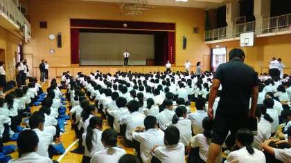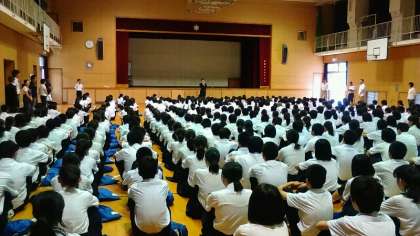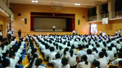 本日7月4日、本校体育館にて全校集会を行いました。館内は熱気に包まれておりましたが、生徒たちはそんな中でも静かに先生のお話に耳を傾けていました。