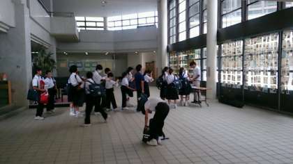 本日より東中ホールで3年生の修学旅行、1年生の一泊移住時の記念写真の購入が始まりました。朝から長い行列ができています。