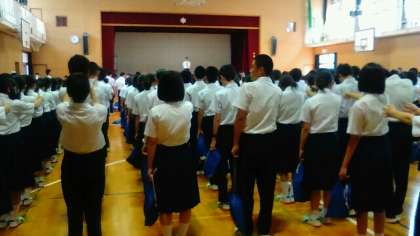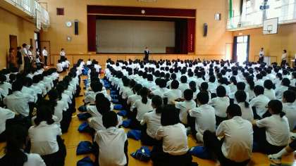 本日7月11日、本校体育館にて全校集会を行いました。今日が1学期の全校集会の最後だったのですが、集合状況が悪かったです。暑いということもありますが、それを言い訳にせず頑張りましょう。