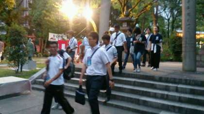 さて、今年も夏祭りが地域の神社で開催されます。今日と明日は生国魂神社です。PTA役員、校外委員の皆さんと教員による巡視活動が始まりました。