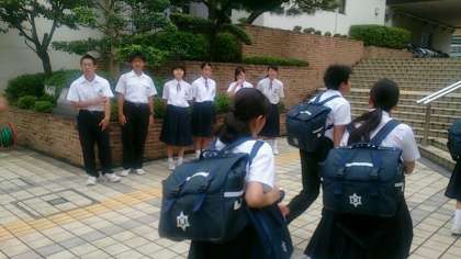 先日の生徒議会で、生徒会役員から挨拶の現状が報告され、まだまだきちんと挨拶ができていないことから、今日から、学級代表も正門前での挨拶運動に取り組むことになりました。火曜日は3年生が担当します。生徒会役員の皆さんとともに、頑張っていきましょう!!