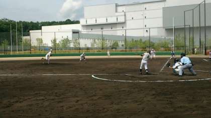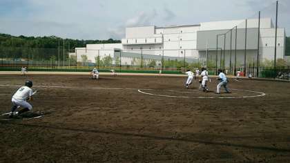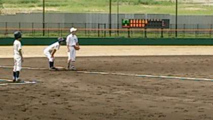 6回の裏、東中の攻撃です。三塁打が飛び出し、チャンスをレフト前のタイムリーヒットで先制点を取りました!