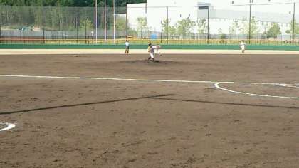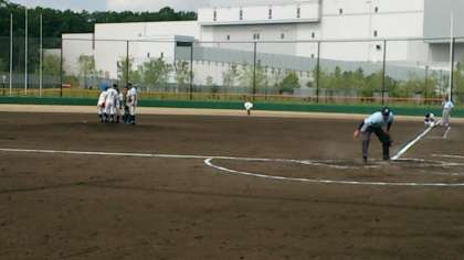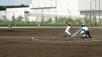 一回表、東中の攻撃は三者凡退におさえられました。その裏、ノーヒットながら1点を先取されました。