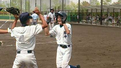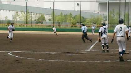 6回表、3番バッターがランニングホームラン!試合は振り出し!頑張れ!東中野球部!!