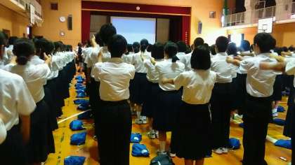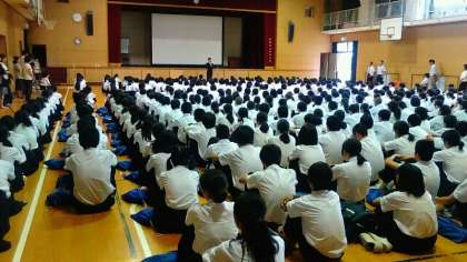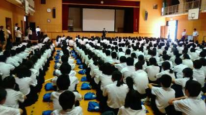 暑い中、しっかりとお話に耳を傾けていました。2学期も楽しみにしています。この夏休みを有意義に過ごしてください。
