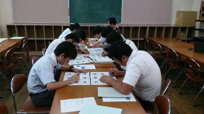 終業式・学級活動、職員会議、クラブ活動を終え、疲れているにも関わらず、1学期最後の若手研修会に多くの先生方が参加しています。指導教諭、アドバイザー教諭の導きのもと、『東中をもっとよくしていくは、何をどうしたらよいのか』を「ホロンの扉」という手法を活用して、アイデアを出し合い、取り組み計画を検討しています。