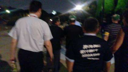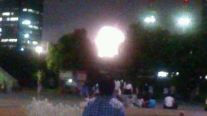 本日、午後8時より、大阪城公園合同パトロールがありました。天神祭の花火も鮮やかなに空を染めていました。