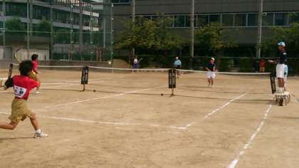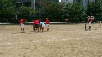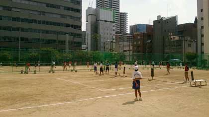 本日、午後から我孫子南中ソフトテニス部の皆さんをお招きして、練習試合が行われています。日中、大阪市は35度に迫る猛暑となっていますが、両校の部員の皆さんの元気な声が、グランドに響き渡っています!