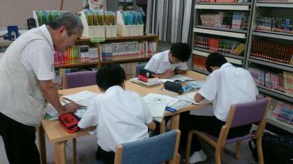 本日、図書室が開館しています。読書活動だけではなく、自分自身で宿題を持参し、自主学習に熱心に取り組んでいます。