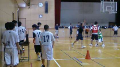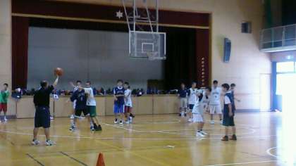 先日行われた3B男子バスケットボールオールスター2次選考会で、選ばれた各校の選手が、東中体育館で、練習しています。3Bの代表として、自信と誇りをもって頑張れ!!