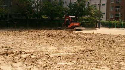 ただ、工事が済めば、荒れてガタガタだった運動場が、平坦で柔らかい土によみがえります!