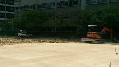 本日より約1週間、運動場の整備工事が入っています。運動場を利用しているクラブの皆さんには支障となり申し訳ありません。事故等がないように、気をつけてください。