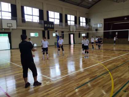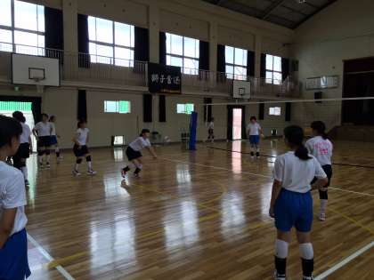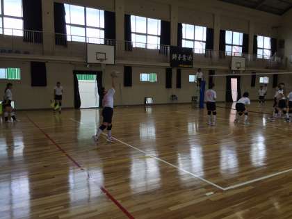 バレー部は朝から梅南中学校、大正西中学校と練習試合をしています。