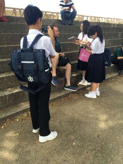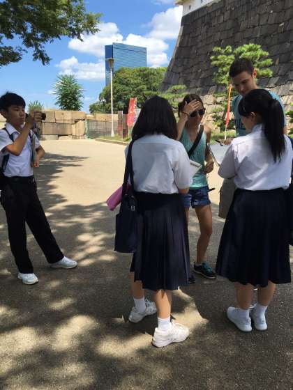 夏休みの4日間取り組んできました。たくさんの外国人にインタビューしました。最初は緊張して、うまく会話できなかったのですが、後半は慣れてきて、笑顔でコミュニケーションできました。