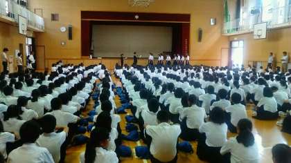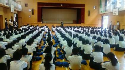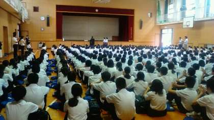 体育館は今日も暑かったですが、生徒たちは静かに話に耳を傾けていました。