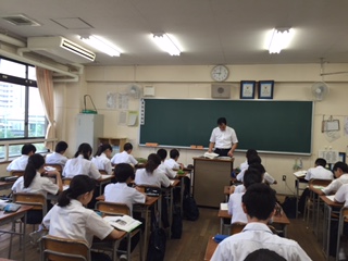 写真は1年3組の授業の様子です。授業をする先生も、見学する先生も、そして授業を受ける生徒の皆さんも、みんな真剣です。