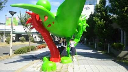 また、美術館への道中にはとっても気になる大きな作品が…これは何でしょう、豆かな??不思議でおもしろいですね。