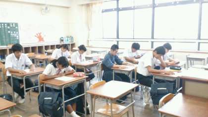 放課後、運動部部長会議が行われています。体育大会での部行進、部対抗リレーについて話し合われました。