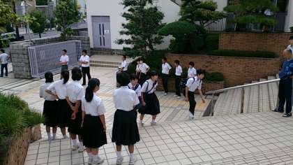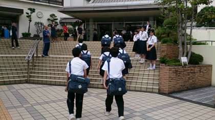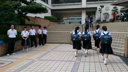 グランドでの活動を終え、生徒会のメンバーは、あいさつ運動に取り組んでくれています。忙しい朝を頑張っています。